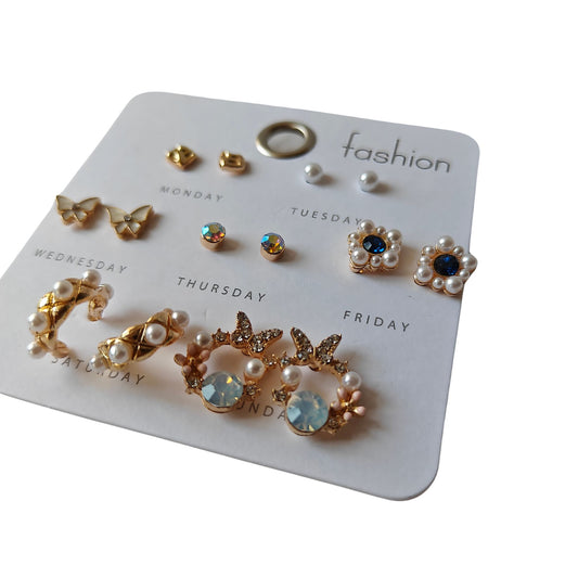 Soft-girl Stud & Small Hoop Set (7 Earrings)